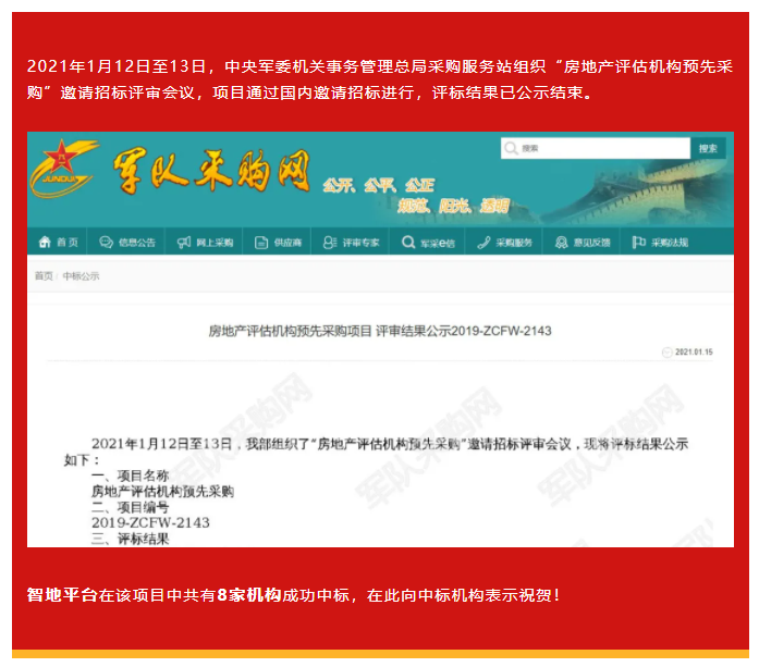 喜报 | 智地平台多家成员机构中标军队房地产评估机构采购项目!