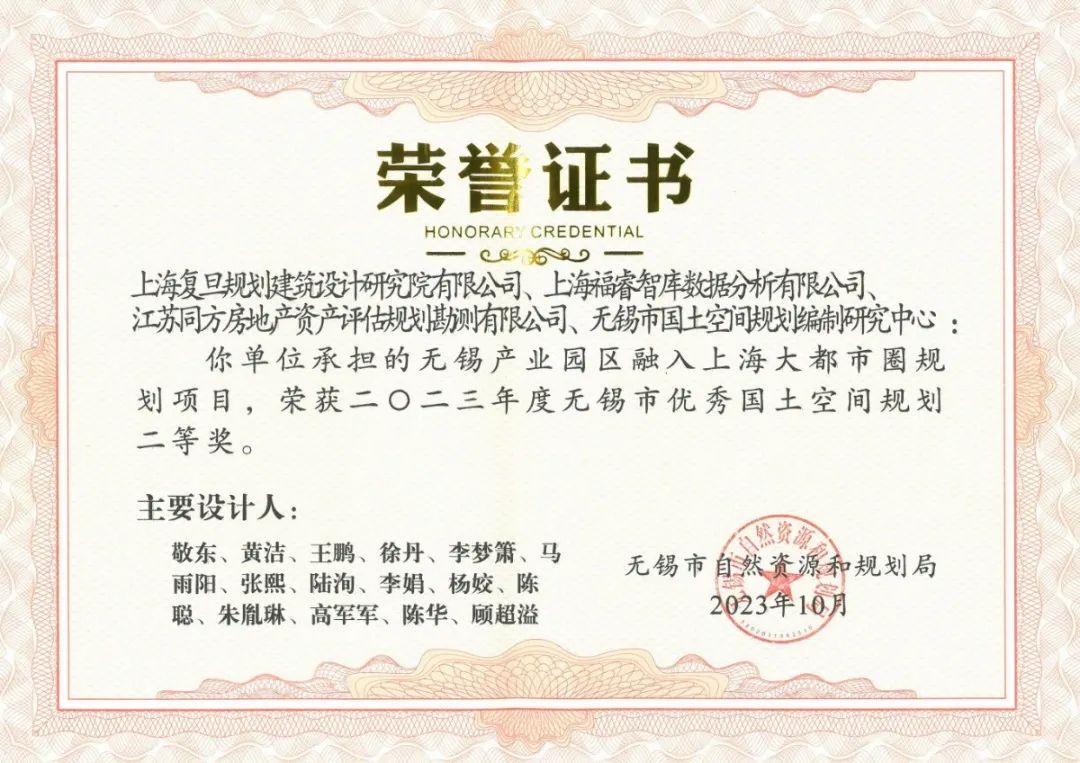 近日,无锡市自然资源和规划局公布了2023年度无锡市优秀国土空间规划奖评选结果,江苏同方评估获得二等奖2项。