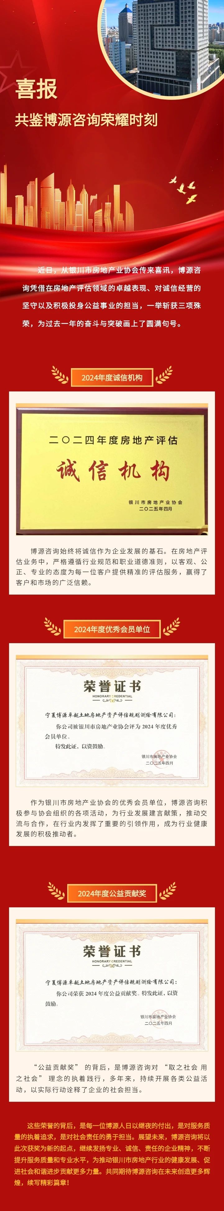 【机构动态】博源咨询荣获2024年度银川市房地产业协会三项殊荣