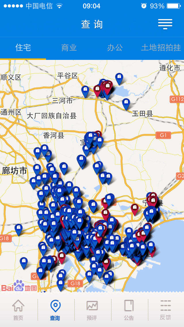 此次上线主要包括天津市住宅及土地招拍挂信息查询、住宅的预评以及地产周刊功能。商业、办公及工业预评预计2015年下半年上线,敬请期待!